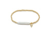 Pulsera elástica de bolitas doradas de chapa de oro de 18k con una perla alargada y una cruz mini de zirconias