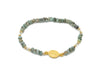 Pulsera elaborada con piedras facetadas naturales y medalla de la Virgen Milagrosa en chapa de oro 18k. Con detalles de mini perlas y cuentas doradas añaden un toque elegante y delicado, ideal para acompañar cualquier look con un significado especial.