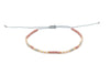 Pulsera de miyuki ajustable es elaborada con tonos rosa, gris y dorado que se combinan en un diseño minimalista y elegante. Su cierre ajustable en hilo permite adaptarla fácilmente a cualquier muñeca, ofreciendo comodidad y estilo para el uso diario.